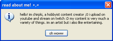 a silly little guy doing silly little things on the silly internet (tap pictures on pages to return to this menu)